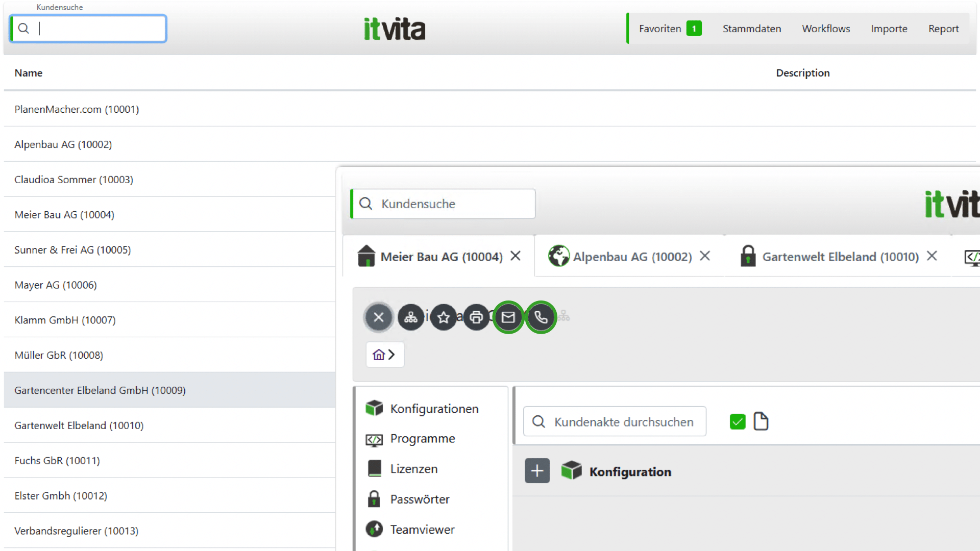 Alle relevanten Informationen sind zentral in Ihrem ERP oder CRM-System verfügbar und gepflegt. Kundenstammdaten können direkt genutzt, Ansprechpartner per E-Mail oder Anruf kontaktiert werden. Belege sind nach Druck einsehbar und die gesamte E-Mail-Kommunikation mit Kunden wird systematisch abgelegt.